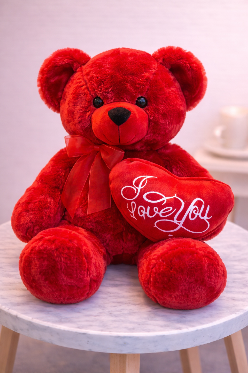 Delight someone special with this large, soft red teddy bear, perfect for hugs and cuddles. Its vibrant color and generous size make it a romantic and thoughtful gift for Valentine’s Day, anniversaries, birthdays, or any special occasion.